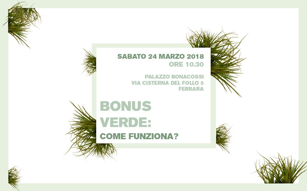 Ma quali sono le spese detraibili? Il bonus vale solo per l’innesto di piante nuove o anche per la manutenzione degli alberi e degli arbusti già presenti? Per ottenere la detrazione è necessario presentare un progetto di riqualificazione? E qual è l’importo massimo che si può scontare? L’associazione Ilturco, in collaborazione con il Garden Club e il Centro Idea, ha voluto organizzare l’incontro a Palazzo Bonacossi – in via Cisterna del Follo 5 - proprio per rispondere a queste domande.