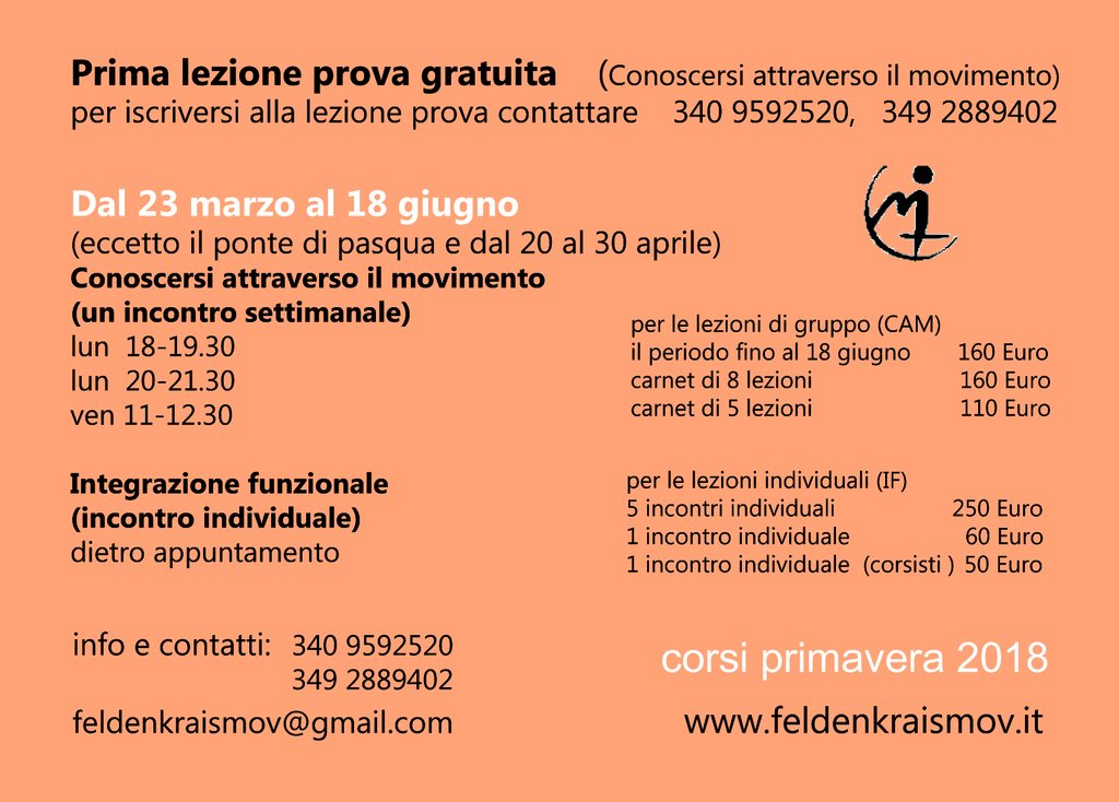 Per maggiori informazioni sul corso o altri in programma, è possibile visitare il sito www.feldenkraismov.it/corsi o rivolgersi a www.feldenkraismov@gmail.com.