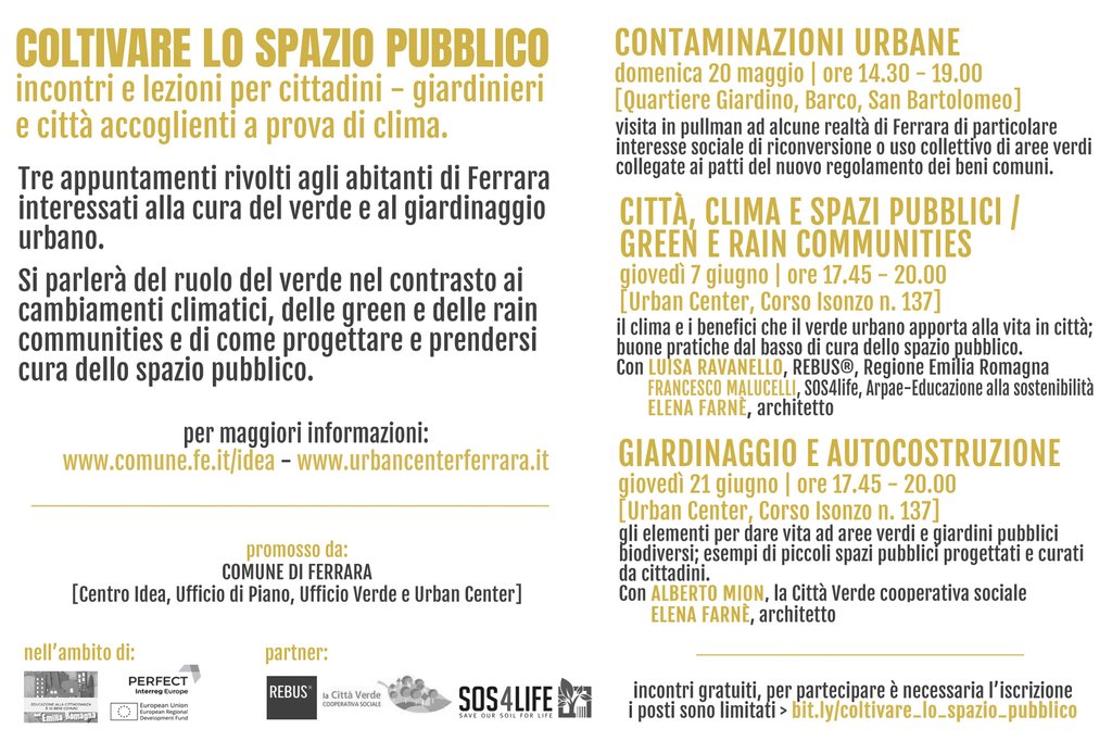 Coltivare lo spazio pubblico è un ciclo di incontri e lezioni gratuiti rivolto agli abitanti di Ferrara interessati alla cura del verde e al giardinaggio urbano, promosso dal Comune di Ferrara nell'ambito del nuovo regolamento del verde e dei beni comuni.