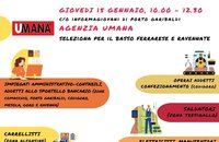 Allora fissatevi il prossimo appuntamento con UMANA, giovedì 15 GENNAIO dalle 10 alle 12.30!