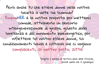 EmpowHER è la nostra proposta per metterci comode, attraverso un percorso intergenerazionale di gruppo, guidato dalla sorellanza, per riflettere e diventare consapevoli.