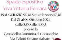 Lunedì 30 Settembre 2024 ore 17.30 ci sarà l'Inaugurazione dello Spazio Espositivo Viva Vittoria Ferrara presso la Casa della Comunità di Comacchio. Lo spazio rimarrà fino a venerdì 04 Ottobre dalle 8.00 alle 19.00. Dalle 16.00 alle 18.00 chi ha dei quadrati di lana 50x50cm li può consegnare. Per informazioni scrivere a sportelloiris@gmail.com