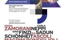 Il MEIS organizza con l'Istituto di Storia Contemporanea di Ferrara e Ferrara La Città del Cinema l'incontro "Quattro donne ferraresi: Maria Zamorani, Gina Finzi Schönheit, Ida Ascoli Magrini Bonfiglioli, Carla Neppi Sadun". L'evento si terrà nel Bookshop del MEIS (via Piangipane 81) il 21 gennaio alle 17 ed è realizzato nell'ambito del Progetto Europeo "Le case di Micol". Interviene lo storico Piervittorio Milizia che presenterà le affascinanti storie di queste donne, intrecciate tra loro e in dialogo con la Storia di Ferrara. Al termine dell'incontro verrà proiettato il corto "La Voce nel Vento" diretto da Filippo Romanelli (Ferrara La Città del Cinema) e dedicato a Carla Neppi Sadun.